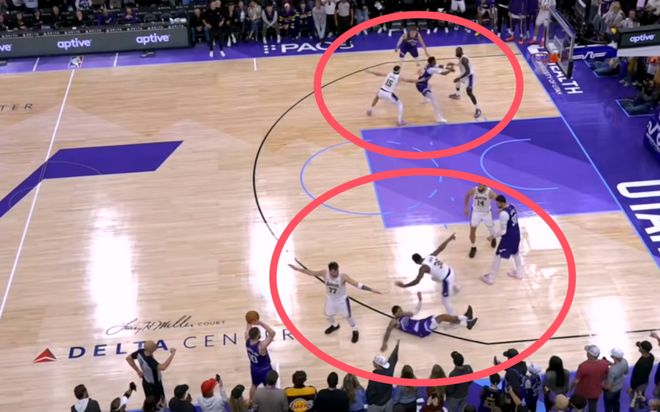 还有一点,爵士在最后时刻打出一波7:0,把本来已经没有悬念的两位数分差给拉回来了,而此时关键时刻的绝杀球,本来湖人只领先2分,时间还剩下5.8秒,爵士是绝对有机会打进最后一攻的。 可是他们把球发出来的同时,本来准备去接球的爵士球员乔治已经被湖人队球员给推倒了,这球也没吹,这是爵士队的哈姆教练彻底暴怒的一个原因,他觉得湖人在发球之前已经犯规了。当时这个乔治被推倒在地上,本来是去接球投绝杀的,追防的斯玛特居然把对面核心放倒了,球接不到了绝杀战术自然也没有完全跑出来。