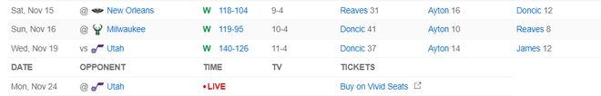 两队数据 湖人:东契奇33分11篮板8助攻,里夫斯22分10篮板,八寸垒13分6篮板,詹姆斯17分8助攻6篮板。 爵士:乔治27分8助攻,马尔卡宁20分7篮板,贝利10分5篮板,努尔基奇11分10篮板,科利尔10分,米哈伊柳克12分。 本场之星:东契奇 虽然此役东契奇的手感并没有那么好,但他还是打出了全面的数据,全场比赛33分11篮板8助攻3抢断。 花絮
