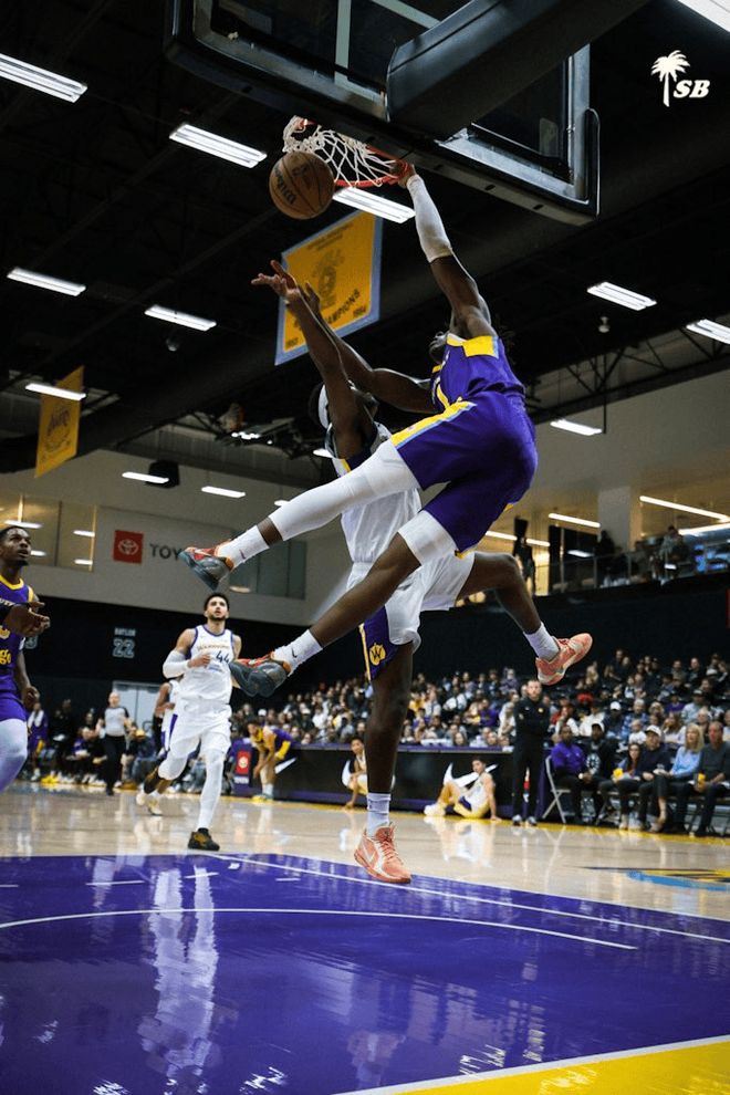 太猛了,太猛了。 湖人25届次轮第6号秀蒂耶罗,在G联赛空接扣翻对手。