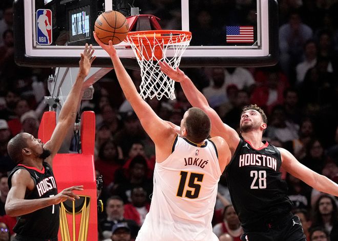 鹈鹕输球后2胜14负排名西部垫底,独行侠赢球后5胜12负,排名从西部第13升到12,今日没有比赛的快船变成第13。 火箭主场迎战掘金,火箭缺少了范弗利特、伊森、芬尼史密斯,掘金缺少了布劳恩,比赛刚开打3分钟,掘金大将戈登腿筋拉伤退出比赛,掘金少了戈登后没有慌乱,他们首节取得13分领先,第二节谢泼德单节18分帮助火箭反超3分,第三节约基奇单节18分带领掘金重新领先2分。第四节还剩23秒时掘金领先6分,火箭在还剩6秒时把分差追到1分,约基奇2罚2中后申京超远三分不中,掘金3分优势击败火箭。约基奇20中11(三分8中4)得到34分10板9助2断,穆雷16中10得到26分2板10助,火箭方面谢泼德13中9(三分8中5)得到27分4助2断,阿门18中10得到22分7板2助2断。