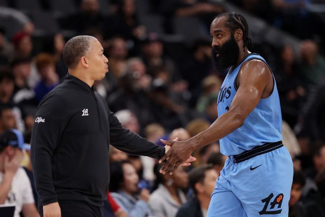 但客观说,哈登能打这么好,多少有些是被逼的。 本赛季的快船开局稀烂,本场拿下黄蜂之前,一度经历了1胜9负,即便赢下黄蜂,战绩也不过5胜11负排在西部倒数第四。 快船的问题太多了,比尔报销、伦纳德受伤、祖巴茨退步、老将集体退化,场边还坐着一个泰伦卢。