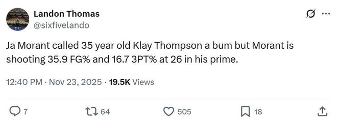 独行侠记者Landon Thomas赛后补刀到:“莫兰特说35岁的克莱是废物,然而26岁正值巅峰的自己本赛季投篮命中率35.9%,三分命中率16.7%。” 只能说相比于莫兰特的恶语相向,克莱这一番看似绅士的大实话反而更加杀人诛心,毕竟谎言不会伤人,真相才是快刀。