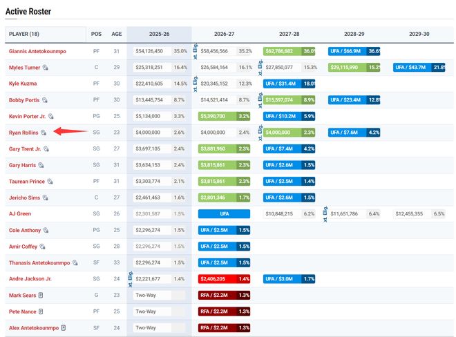本赛季罗林斯年薪400万,他是2022年次轮44顺位被勇士选中的球员,他带着勇士旧将的标签在密尔沃基获得新生,此前他单场32分8助攻5三分手刃旧主勇士的戏码也非常励志(无字母)。库兹马拿2241万场均13分不汗颜吗? |