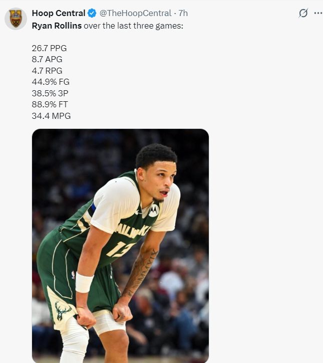 本赛季罗林斯场均31.7分钟,拿到18.6分5.9助攻2.9篮板1.5抢断0.3盖帽,命中率49.3%,三分命中率40.5%,他的得分雄鹿第二,助攻雄鹿第二,2.5个三分雄鹿第二,他成为了字母哥最大的助力?
