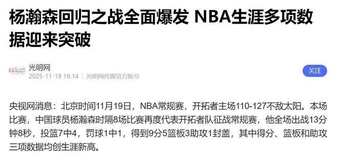 反观杨瀚森,虽然身高优势明显、传球能力突出,但他的低位打法节奏偏慢,防守端的移动速度也暂时难以跟上球队的快攻节奏。 更值得注意的是,本场开拓者连双向球员库克都获得2分钟登场时间,却未给杨瀚森机会,侧面反映出教练组对他当前状态的判断——尚未达到NBA比赛的实战要求。
