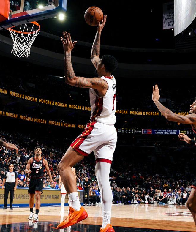 在上赛季送走和球队闹翻的核心巴特勒之后,不少球迷都认为热火将被迫进入重建期,但是他们却用出色的整体攻防,证明了自己依旧是东部非常有竞争力的球队,上赛季完成大交易的热火就闯入到了季后赛,本赛季的常规赛开打之后,在希罗处于恢复期一场未打的情况下,热火表现依旧强势,前十六场常规赛战罢,取得了10胜6负的战绩,在积分榜高居第四。 这一个比赛日,正处于三连胜的热火,奔赴客场挑战76人,本场比赛保罗乔治表现不佳,拖了马克西的后腿,反观热火则在鲍威尔和双塔阿德巴约和韦尔的率领下,打出了更加出色的攻防表现,最终以127-117客场掀翻76人。
