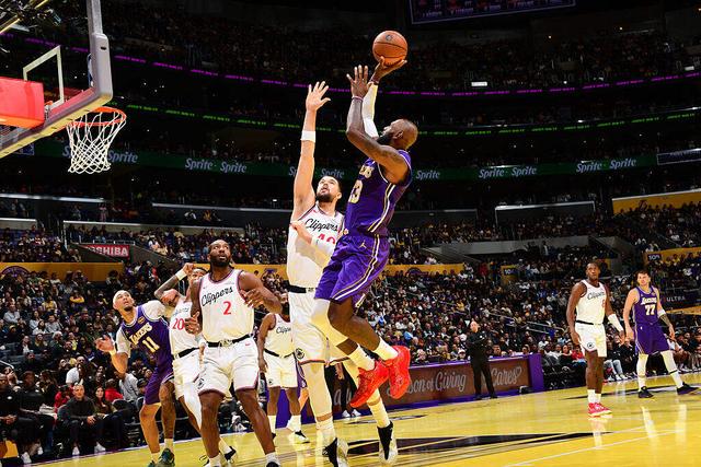 第二节比赛,快船依然紧咬比分,但首节比赛一直修身养性的四旬老汉又开始发力了。 在刚刚伤愈复出重回赛场时,老詹曾说眼下这个阶段对他而言才是真正的训练营,目前看来,以赛代练效果不错。 今天的比赛,他在首节几乎所有数据挂零的情况下在第二节迅速进入了状态,单节贡献9分。