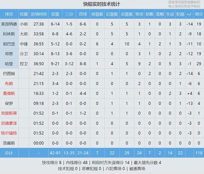 湖人三叉戟合砍下99分24篮板22助攻,东契奇赛后表示,自己会帮海斯缴纳罚款!哈登29分5板9助2断、小卡19分5板3助、邓恩19分3助。最后看看比赛数据,说说你的心情:
