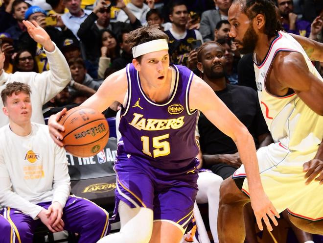 东契奇罚球命中,随后单打哈登出现三不沾。哈登抛投得分,距离终场不足3分钟,快船将分差缩小至个位数,胜负悬念再起,比赛也进入白热化阶段。东契奇补篮被犯规,祖巴茨个人第5次犯规,东契奇2罚1中。哈登外线不进,里夫斯快速上篮得分,科林斯外线打铁,詹姆斯连续抢下篮板,东契奇助攻海斯空接暴扣。泰伦卢请求暂停,距离终场还剩1分52秒,快船落后14分并换上板凳席末端的球员,选择提前弃子认负。湖人抢断,詹姆斯上篮得分,里夫斯2罚全中,两队随后在场上练兵,比赛时间逐渐走完。最终,湖人以135比118力擒快船,就此斩获了5连胜。此役之后,湖人排名反超掘金升至西部第二位。同时,湖人还锁定了NBA杯的淘汰赛资格。 两队数据 快船队,莱昂纳德14中6,三分球5中1得到了19分5板3助、邓恩13中8砍下了19分3助、科林斯8中6得到了18分5板1助、祖巴茨12中5得到10分10板4助2帽、桑德斯6分1板1助、巴图姆6分1板2断、布朗6分2助、保罗3中2得到4分1板1助、克里斯蒂1分1板。 湖人掀翻快船