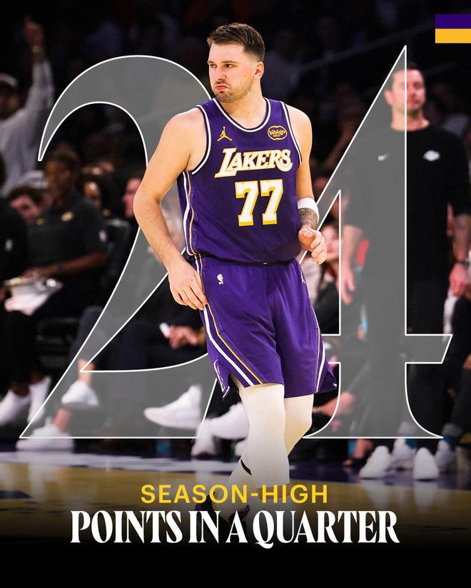 值得一提的是,东契奇在此役还创下了NBA历史第1神迹。数据显示:这是东契奇生涯第4次半场得到至少30分5助攻5三分,追平哈登并列历史第一多,斯蒂芬库里、利拉德和特雷·杨并列第二(都是2次)。 此外,东契奇在此役还刷爆了纪录。第1、东契奇首节拿下24分创下了湖人队史第一节得分新纪录,此前纪录也是由东契奇保持(23分)。第2、东契奇单节24分是湖人队史自2007年的科比后的单节得分新高。第3、这是东契奇职业生涯第26次单节20+,追平詹姆斯,并列历史第6。 东契奇首节砍下了24分