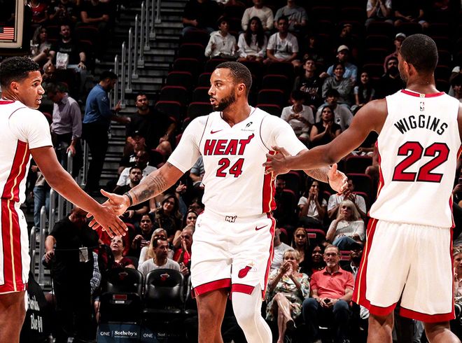 反而是活塞和猛龙两支青年大队快速崛起,活塞防守稳居联盟前四,猛龙则有超级进攻四人组(英格拉姆+巴恩斯+奎克利+巴雷特),场均接近80分的稳定输出,士别三日当刮目相待。但更让人意外的是,东部还有一直球队悄悄崛起,就是热火。热火开赛前18场比赛,赢下12场,紧咬住活塞和猛龙,他们有几组数据让人“看不懂”:热火本赛季是NBA过去33年历史上回合数最多的球队,平均48分钟要打105.6回合,节奏最快!而他们场均得分也飙升到123.9分,高居联盟第一!更可怕的是,热火本赛季防守效率111.1,联盟第三!