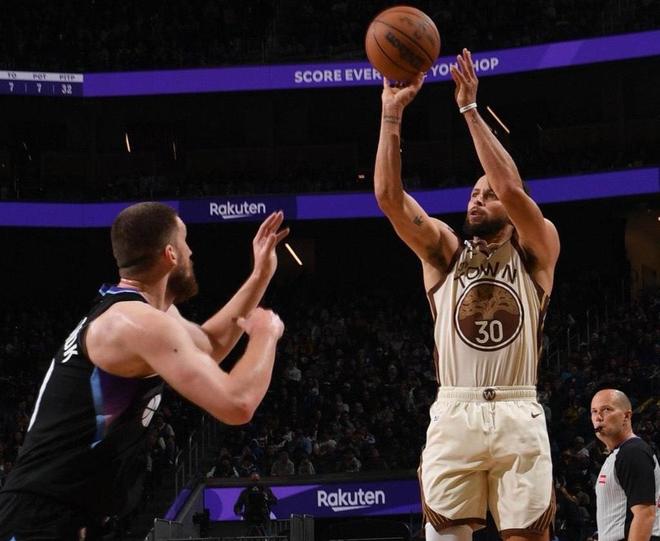 汤普森狂轰28+7+8,却无缘日最佳,因为他遇到一战打破4大纪录的库里。还得是库里,带领勇士134-117大胜西部鱼腩爵士;库里出战29分钟,24投12中,其中三分球17投6中,罚球1投1中,得到31分3篮板2助攻1抢断2封盖。 第一,库里本赛季至今已经8次单场投进5+三分球,这项数据他目前超越了快船后卫詹姆斯-哈登,排在联盟第一。 第二,库里连续3场比赛砍下30+5三分,成为做到这点的历史最老球员。 第三,库里成为NBA历史上出场时间少于30分钟且得分超过30分的场次最多的球员。 第四,库里已24次单场比赛在最多1次罚球情况下拿到30+得分,历史第一!本赛季,库里能带领勇士创造奇迹,再创辉煌吗?