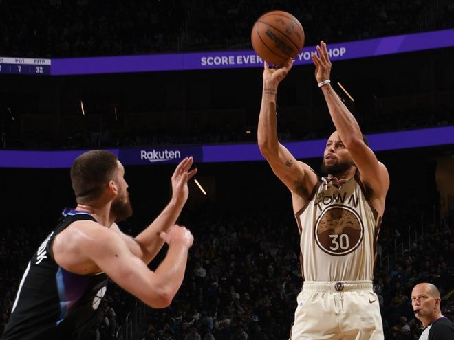 打了半节爵士没有得分,库里继续轰三分球,勇士打出21-0的高潮!爵士依靠菲利波夫斯基三分止血,库里和希尔德内外开花,节末库里迎射马卡宁,巴特勒快攻上篮,半场结束时,勇士67-55反超爵士。进入下半场,库里继续飚三分,小佩顿喂饼博斯特和巴特勒,穆迪和库里继续下三分雨。勇士拉开17分分差后,爵士在马卡宁带领下尝试反扑,但库里军训老队友李凯尔,库里接球三分,希尔德干拔三分,勇士屡屡给出回应。后半段巴特勒继续喂饼波杰续上三分,此后巴特勒接球继续扔三分。