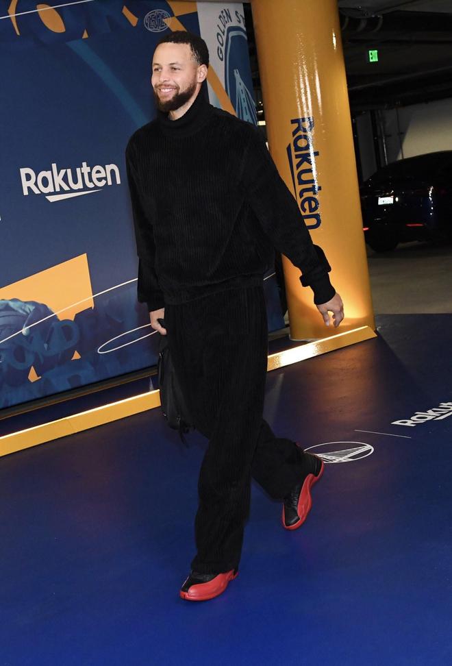 赛前,勇士球星斯蒂芬-库里上脚迈克尔-乔丹在1997年总决赛G5中“流感之战”配色的Air Jordan 12球鞋入场。 而在随后的赛前热身中,库里又换上了乔丹在1998年总决赛G6“最后一投”的那场比赛中的同款配色Air Jordan 14球鞋。 在前不久,库里与合作多年的安德玛品牌分道扬镳,目前他没有球鞋代言,也试穿了多款品牌球鞋。