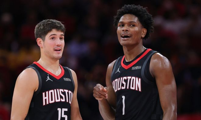 具体来说,谢泼德的崛起可能会在两个方面改变火箭对未来选秀权的使用策略: 首先,火箭的核心目标依然是本赛季夺冠,但在近期选秀接连淘到宝后,球队未来的五个首发位置中,已有四个基本确定——谢泼德、阿门-汤普森、申京和小贾巴里-史密斯。 谢泼德+阿门的后场组合潜力巨大,尤其是如果谢泼德能继续提升持球组织能力的话。他们在进攻端互补性极强,防守端也都具备极强的干扰能力。随着谢泼德、阿门、史密斯和申京成为球队的基石,管理层的关注点应该会转向寻找更具尺寸的侧翼球员或三分专家。最重要的是,球队需要的是能胜任特定角色的拼图型球员,而非高天花板的年轻新秀。