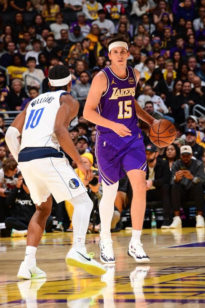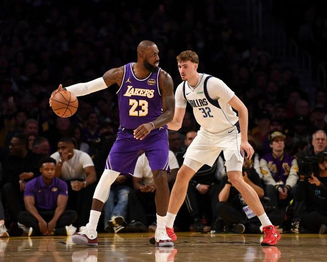 湖人:里夫斯38分8板3助、东契奇35分5板11助、艾顿17分8板2助2帽、八村塁14分4板、詹姆斯13分5板7助。独行侠:华盛顿22分9板、内姆哈德17分2板4助、马绍尔16分7板2助、弗拉格13分7板11助3断、克里斯蒂13分、浓眉哥12分5板5助3帽、威廉姆斯11分2板3助、克莱10分。 湖人过去5场豪取5连胜,独行侠过去两场连输灰熊与热火遭遇2连败。本场独行侠缺少欧文、莱夫利、埃克萨姆,湖人缺少斯马特。浓眉哥复出对阵旧主,首节前5分钟双方交替领先缠斗至湖人13-12,湖人连得4分扩大5分优势。独行侠一波7-0攻势反超2分,湖人在东契奇攻传结合下反超比分,首节结束湖人28-22领先独行侠。独行侠首节14中7,其中三分7中3,浓眉哥1中1得到2分,湖人20中11,其中三分9中5,东契奇6中4得到10分3助攻。