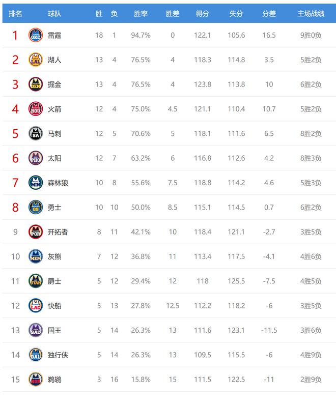 北京时间2025年11月27日,今日NBA有9场比赛,勇士、火箭、雷霆、马刺、开拓者、太阳、森林狼、灰熊、国王、鹈鹕参与其中,赛后西部排名发生了变化。 雷霆主场迎战森林狼,雷霆缺少了杰伦、威金斯,森林狼阵容齐整,雷霆长时间领先,一度领先12分,第四节森林狼一度反超比分,但最后几分钟森林狼出现了多次低级失误葬送了比赛,最终雷霆以8分优势击败森林狼。亚历山大19中12得到40分6板6助3断,哈滕10中6得到15分7板2助,森林狼方面爱德华兹19中9得到31分8板5助,香农7中7得到18分2板。