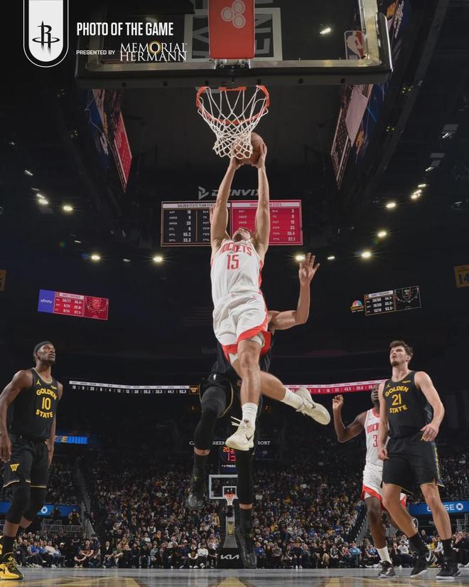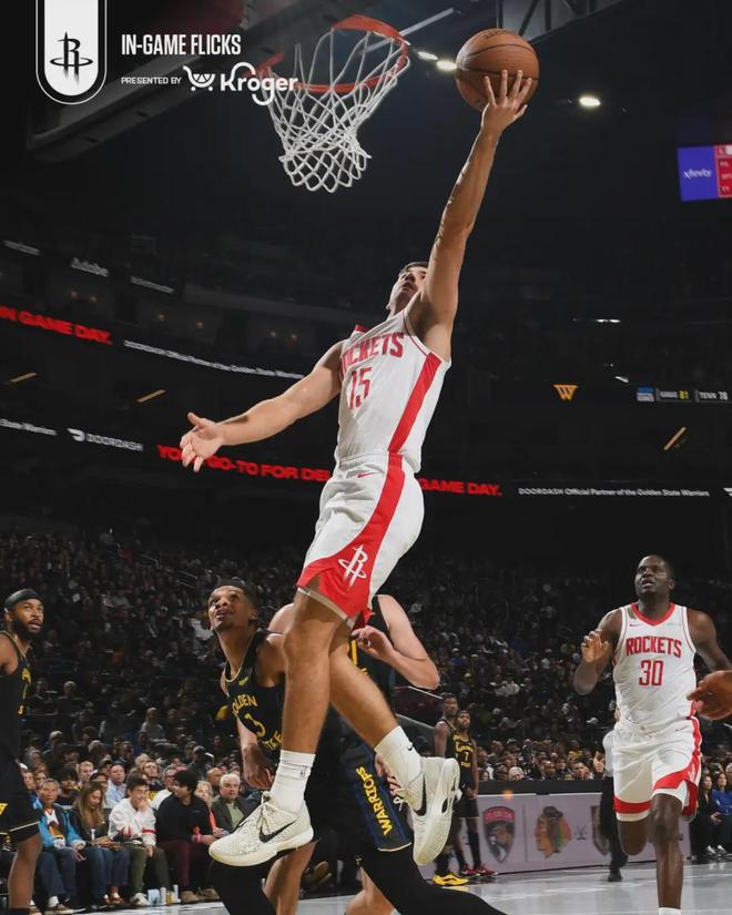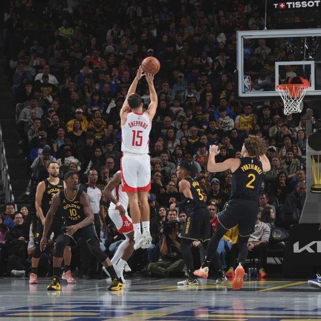 凯文-杜兰特缺阵,范弗里特报销,伊森伤停,杰伦-格林和狄龙-布鲁克斯离队,火箭与上赛季季后赛相比完全是一个残阵的状态。 按照双方阵容差距,火箭应该大概率打不过两位当家球星都在的勇士,但谢泼德的爆发让战局出现了转机。 谢泼德早早就坚定的扛起了进攻大旗,首节得分上双,包揽了全队一半的得分。 半场结束时,谢泼德拿到全场最高的15分,是全队唯一得分上双的球员,在他苦苦支撑之下火箭落后12分进入下半场。