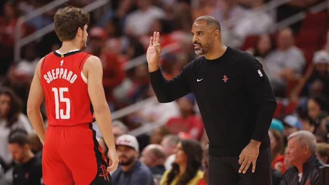 而在仅仅二十天前,乌度卡对谢泼德的态度与现在相比简直云泥之别。 月初对阵灰熊的比赛中,一个火箭的进攻回合,申京将球传给了三分线外大空位的谢泼德,位于自己甜点位且无人防守的谢泼德没有出手。 在此之前的一场比赛他全场7投2中、三分4中1、罚球3中1仅得到5分,此时面对大空位的机会还是有些犹豫不敢出手,而是选择向罚球线运了两步,在仍处于空位的情况下将球传了出去。 球传给了底角的阿门-汤普森,后者带球杀入禁区上篮不中,灰熊抢下篮板后迅速发动快攻,完成了一次精彩的空接。 乌度卡在球还没有落地时就愤怒的冲进场内喊出暂停,紧盯着走向替补席的谢泼德怒吼:“投啊!!!”