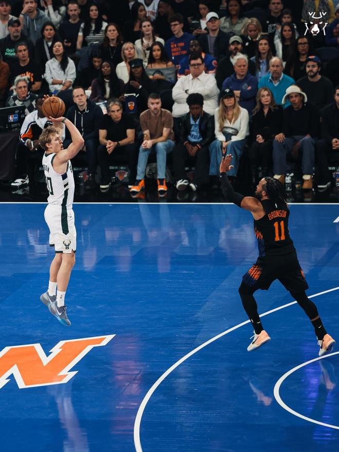 北京时间11月29日,NBA杯小组赛东部C组迎来了雄鹿与尼克斯的强强对话。6连败的密尔沃基,志在触底反弹。扬尼斯阿德托昆博缺战4场后实现了伤愈复出,并且携手特纳、特伦特、格林、罗林斯出任首发,普林斯、波特继续伤停。2连胜的纽约高居东部第4,被视为夺冠热门之一。阿奴诺比、沙梅特因伤缺战,尼克斯的首发五虎是唐斯、布伦森、布里奇斯、哈特与麦克布莱克。该场比赛,是两队本赛季的第二次交手。首战10分惜败的纽约,期待此役在主场实现复仇。 字母哥30+15+8创NBA历史第1神迹,雄鹿惨遭尼克斯逆转!布伦森37+5暴走,库兹马9中8! 全场比赛回顾 首节开打,哈特2罚全中,字母哥空接暴扣还以颜色,布里奇斯抢断字母哥,随后助攻唐斯篮下得分。特纳命中三分球,哈特单打取分,布伦森、麦克布莱德、字母哥各有2罚全中。格林连中2记远投,特纳外线取分,字母哥篮下得手,尼克斯请求暂停。唐斯2罚全中,布伦森冲击篮下得手,哈特抢断后完成暴扣,道格里弗斯请求暂停,亚布塞莱轰进远投,纽约打出了9比0的攻势。 格林出手超远三分球