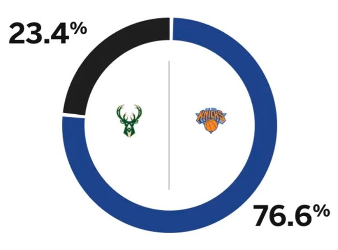 赛前,美媒ESPN对本场比赛进行了胜率预测,尼克斯胜率高达76.6%,雄鹿胜率则仅有23.4% ,差距非常明显。 首发阵容方面,雄鹿队这边,字母哥应该复出,老里弗斯排出的最新首发五人组为:莱恩-罗林斯、AJ-格林、小特伦特、扬尼斯-阿德托昆博、迈尔斯-特纳;尼克斯这边,首发阵容则为:布伦森、麦克布莱德、布里奇斯、哈特、唐斯。