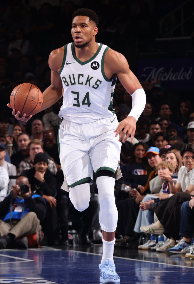 扬尼斯自然是不可阻挡,上半场金金出战12分钟,8中6拿到16分10篮板4助攻,命中率高达75%,罚球4个都进了。有了扬尼斯在攻防两端的威慑力,AJ格林上半场三分6中4拿到12分成为奇兵,替补席的库兹马4中4拿到9分3篮板3助攻,雄鹿半场打完还领先尼克斯四巨头1分(阿奴诺比伤停)。