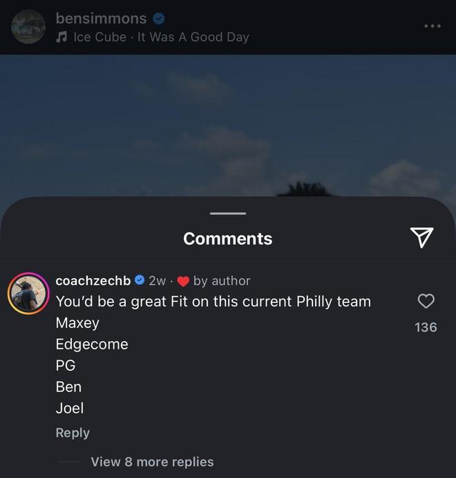 破镜重圆?本-西蒙斯点赞网友让其回归76人的评
