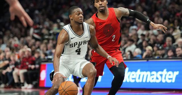 北京时间11月27日,NBA杯小组赛,开拓者主场对阵马刺。两队前三节比分焦灼,马刺末节打出14-5高潮锁定胜局,最终115-102以力克开拓者。 马刺方面,福克斯37分6篮板8助攻3抢断,瓦塞尔23分5篮板6助攻,尚帕涅12分11篮板。 开拓者方面,阿夫迪亚37分6篮板8助攻,克林根9分11篮板,格兰特13分4篮板。中国球员杨瀚森上场1分钟,得到1篮板。 (NBA) |