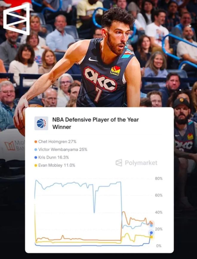 根据美媒Legion Hoops报道:切特-霍姆格伦在Polymarket平台上已超越维克托-文班亚马,成为年度最佳防守球员奖项的最热门人选。(文班亚马因为小腿伤势继续缺席) 比赛回顾