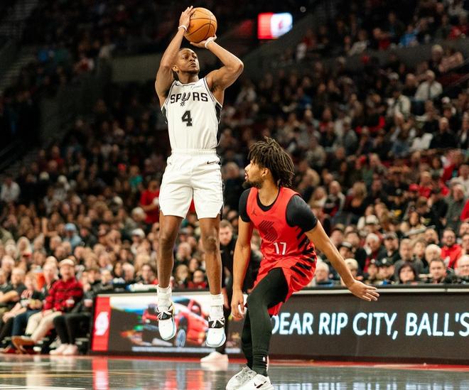 两队数据 开拓者:阿夫迪亚37分8助攻6篮板,格兰特13分,卡马拉10分,克林根9分10篮板,夏普11分,罗威10分5篮板,杨瀚森仅打1分02秒拿到1篮板。 马刺:福克斯37分8助攻,瓦塞尔23分6篮板,巴恩斯13分3篮板,尚帕尼12分11篮板,凯尔登11分10篮板。 本场之星:福克斯 在没有文班亚马的情况下,福克斯此役的发挥非常出色,他与阿夫迪亚完成了对轰,两人都拿到了35+的数据。 花絮