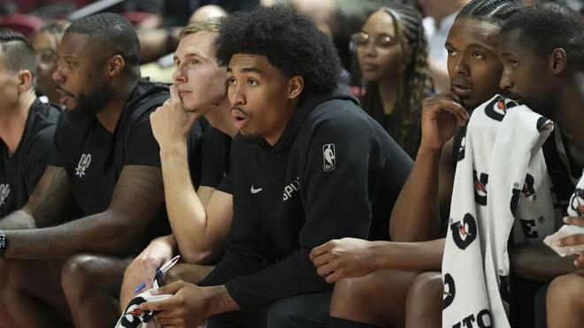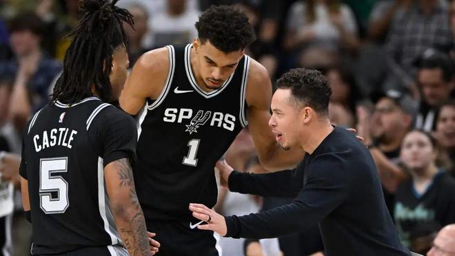 几乎是上一回合的复刻,只不过这次在底角吃饼的是尚帕尼 这从侧面证明了文班的赛场影响力,却也从正面印证了马刺其他人的水平——约基奇得分少助攻多掘金就能赢,是因为穆雷戈登们真的能打死对面,而文班这样马刺就很可能输球,是因为队友的实力还不够强。 一切对这支马刺的质疑都源于此。福克斯、卡斯尔、瓦塞尔、哈珀的四后卫阵容兼容性严重存疑;凯尔登、巴恩斯、尚帕尼、索汉的锋线则明显不够看,但在广大球迷眼中,教练米奇才是这支马刺最大的短板,以至于扩充五号位轮换都显得没那么迫切了。 更麻烦的是,马刺的核心们还没磨练出化学反应。上赛季的文班和福克斯先后休战,本赛季文福组合刚合体,就被勇士双杀,文班遭遇腿部伤病,甚至科内特、卡斯尔和哈珀也高挂免战牌。以至于马刺几乎没机会凑出满血阵容,年轻和年老的队员们承担的任务也如一波未平,一波又起。