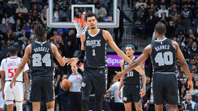 福克斯和科内特的挡拆简单而高效,他是马刺发起挡拆最多的人,也是仅次于文班的单打手 同样地,虽然本赛季还没满血出战过,但马刺的轮换也非常明晰。福克斯、卡斯尔、瓦塞尔、巴恩斯、文班,这是最理想情况下的首发阵容;哈珀、凯尔登、尚帕尼、索汉、科内特,这是五上五下的衔接段。大多数时候,马刺会把后卫麻将桌拆开,在场上保持双枪组合(得益于哈珀惊人的成熟和球商,他甚至能单独带领衔接段),以维系这套进攻体系。 文班在场的时候,马刺的选择更多样,但场面上往往更简单粗暴。文班会持球和任何队友打挡拆,会当掩护墙,会拿球“裸突”,也会在弧顶性感发牌,甚至会背身发起进攻。但以面框突分为主的基础逻辑不会变,马刺悠久的弱侧挡切习惯也一直存续。12胜5负的战绩足以证明这套逻辑的正确性,唯一的问题只是文班以外的阵容强度和适配度。