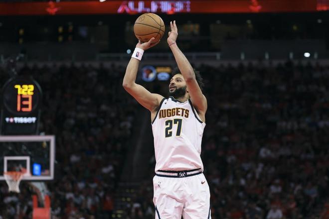 这场对攻大战中,掘金多位核心球员打出了现象级的个人表现,却无奈陷入 “空砍” 的尴尬境地。贾马尔・穆雷无疑是掘金进攻端最耀眼的明星,他在 36 分钟的出场时间里手感滚烫,投篮 20 中 13,其中三分球 8 中 5,罚球 7 中 6,高效砍下 37 分 4 篮板 7 助攻 1 盖帽的豪华数据,进攻端势不可挡却难挽败局。