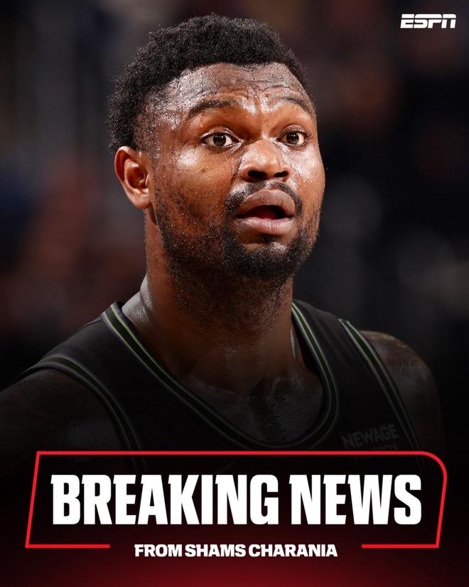 Shams:锡安因右腿内收肌受伤将缺席更长时间,三