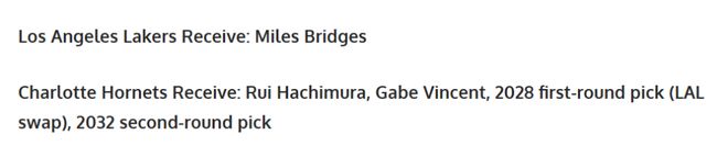 美媒Fadeaway World曾为湖人列出过一笔4换1的交易方案,方案为湖人送出八村垒、文森特、2028年首轮交换权、2032年次轮签,从黄蜂得到布里奇斯。大家认为湖人该出手追求布里奇斯吗? |