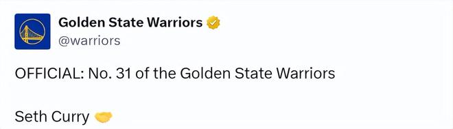 勇士官宣签下塞斯-库里!他将身穿31号球衣:明