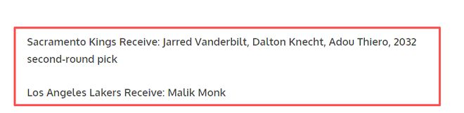 方案三,与国王交易,湖人送走范德比尔特,克内希特,阿杜·蒂耶罗,2032年第二轮选秀权,从国王得到蒙克!正处于动荡期、可能重组的国王是一个潜在的交易对象。对国王而言,范德比尔特的吸引力可能次要,但年轻锋线蒂耶罗以及3分射手克内克特,加上一个选秀权,或许值得他们放弃蒙克。而对湖人来说,迎回旧将蒙克意义重大。他场均12.7分、三分命中率41.6%,是精英级的射手,能升级湖人的外线火力。