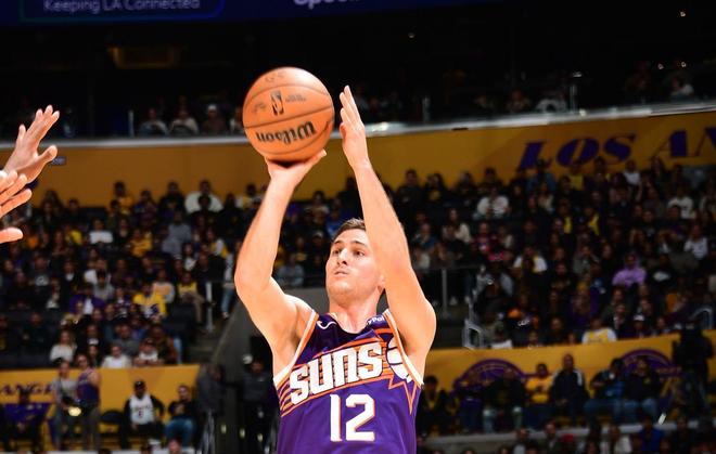 吉莱斯皮变成了太阳队的头号三分射手。不得不说,太阳用1年230万美元签下这位落选秀真是赚大了。 这场对阵湖人的比赛,吉莱斯皮首发出战,和布克搭档后场。在布克受伤退赛后,太阳依然保持旺盛的进攻火力。吉莱斯皮和狄龙·布鲁克斯都打得非常凶狠。其中在末节比赛,吉莱斯皮连续投进三分球,浇灭了湖人反扑的火焰。吉莱斯皮在末节独取16分,其中包括投进4个三分球。 |