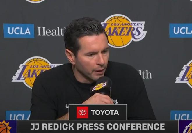 赛后,湖人队主帅JJ-雷迪克出席了新闻发布会,他谈到了本场失利的感受:“如果你不全力以赴对抗对手,你就会暴露弱点。所以,你知道,上半场我们有好几次在防守端都占据人数优势,但对方球员却轻松地从我们身边溜过。我们之前讨论过要和他们拼身体对抗,但在比赛的任何阶段,我们都没有做到这一点。也许可能是连续打了三四场比赛,大家脑子都有些不清醒了。我不知道。我不记得我们讨论过要在防守时守沉退策略。吉莱斯皮在投三分,罗伊斯-奥尼尔也在投三分。我不知道什么原因。” “这感觉很奇怪,真的,感觉就像那些你费尽心思指导过的球员被怪物控制了一样。他们完全没有打出他们平时的水平。太奇怪了。” |
