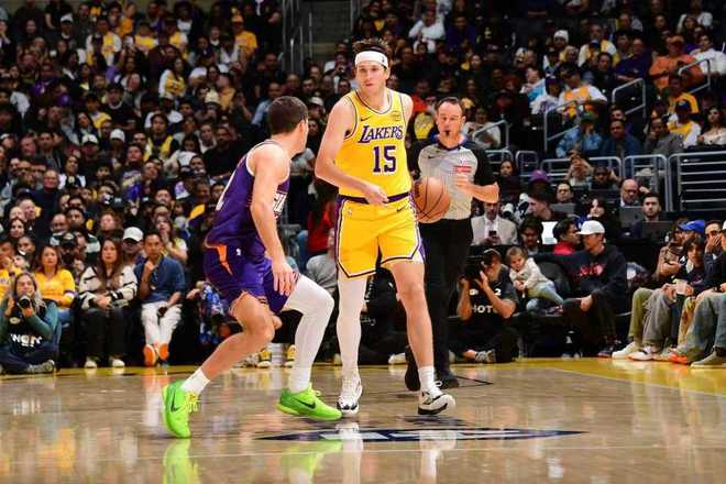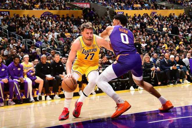 湖人:东契奇38分11板5助、里夫斯16分4板3助、克内克特13分4板、艾顿12分9板、詹姆斯10分3助。 湖人过去7场比赛豪取7连胜,太阳过去两场连输雷霆与掘金遭遇2连败。本场湖人缺少斯马特,太阳缺少阿伦、格林、利弗斯。詹姆斯轮休一场后复出,首节双方展开对攻均是单节轰下30+得分,东契奇火力全开打满首节12分钟,一人11中8狂轰20分,他连续两场比赛首节轰下20分。布克首节7中4得到11+2+3,引领太阳用团队攻势对攻,双方首节均是25中13,且均是命中3记三分,首节结束双方维持31-31。