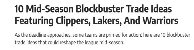 勇士6换2,湖人3换1,快船4换2!交易截止日前将