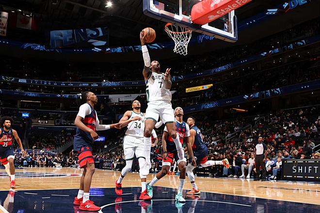 本场比赛中,雄鹿虽然输掉了比赛,但是球队的先发后场大将小凯文-波特(Kevin Porter Jr.)的表现并不理想。小波特全场出场31分01秒,投篮15中12,三分线外6中5,罚球2中1,得到了全场最高分30分外加4篮板5助攻3抢断的数据,正负值也是达到了全场最高的+13。小波特在进攻端大杀四方,他展现出了全面的得分能力,他的进攻效率相当突出,他的突破能力和终结能力出色,他在中远距离投篮方面也是保持了很高的稳定性,他在传球和组织方面能够起到一定的作用,甚至他在防守端的表现都是极其出色的。小波特在场上时球队的局面也是相当不错的,这也能够体现在他超高的正负值上。可惜问题就在于,除了小波特,雄鹿很多其他球员的表现都非常糟糕,他的努力完全没有办法起到作用,他都打成这样了球队还是赢不了球,真是一件有些无奈的事情。