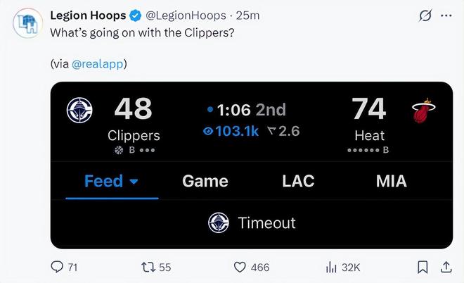 第二节快船好不容易打出一波流缩小到1分,可随后快船被热火打出一波30-2的攻势直接落后到20分,也就是进攻各种打铁,防守端根本不设防,热火各种空位三分球,快船全队都没有任何的求胜欲望。