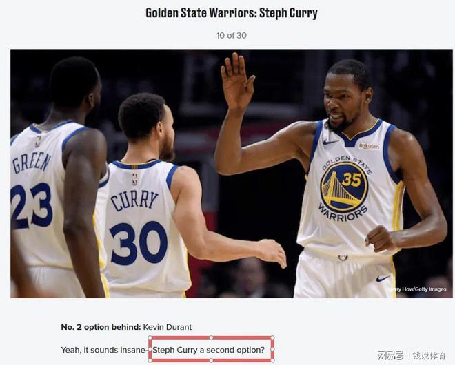 有无争议?美媒BR评队史最佳二当家时将库里作为