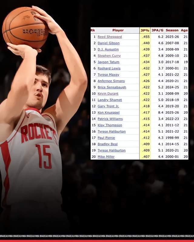 更夸张的数据在于三分球,根据火箭记者Bradeaux统计: NBA历史21岁及以下三分命中率榜单中,谢泼德以45.5%位居第一,库里43.7%位居第二,杜兰特以42.2%位居第三。 单项数据力压杜库之后,其他方面同样优秀: 谢泼德本赛季抢断率高居联盟第五; DRPM(防守正负值)新秀第一; 单防每回合失分仅0.89分,位居联盟前17%; 协防到位率从52%涨到79%;