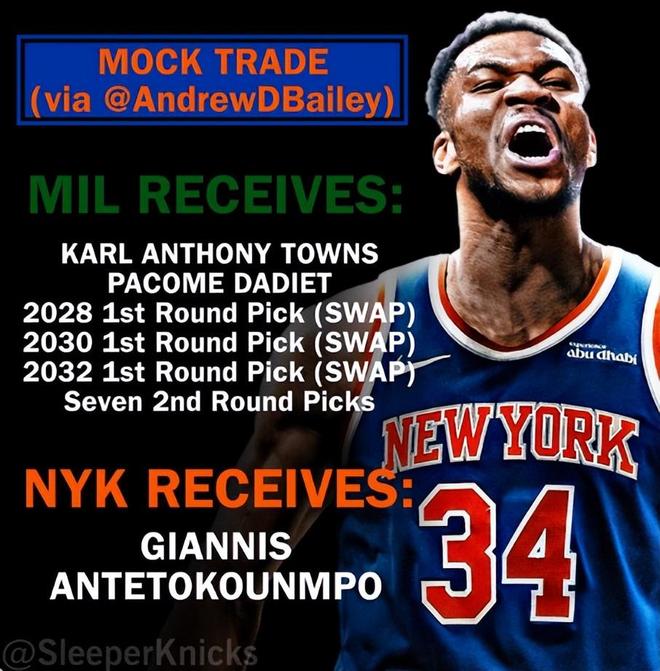 纽约是唯一有直飞希腊首都的美国城市,所以美媒认为扬尼斯要离开雄鹿的话最大概率是去尼克斯,美媒也模拟了方案。