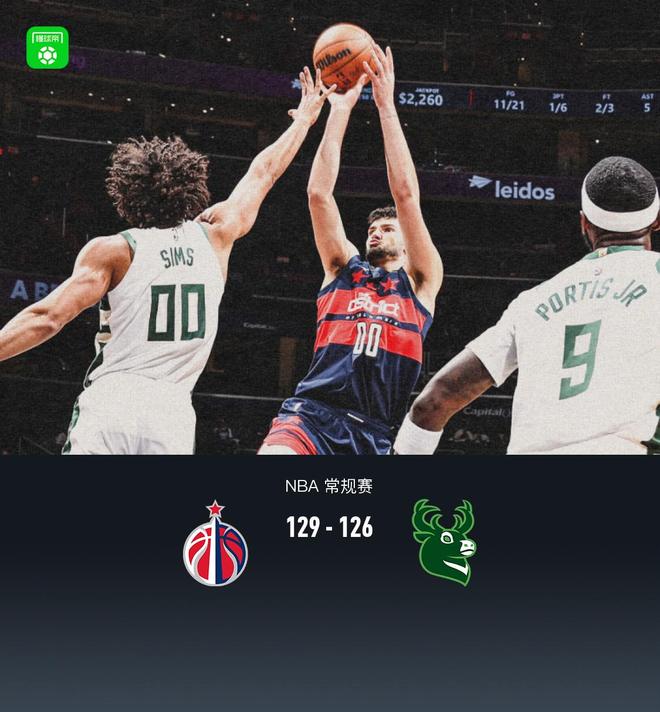 奇才129-126逆转雄鹿,麦科勒姆28分,KPJ空砍30分