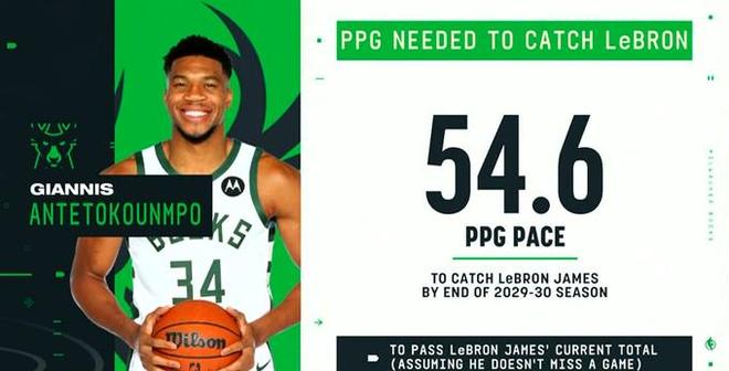 “仅”需场均54.6分,字母哥就能在2030年追上詹姆