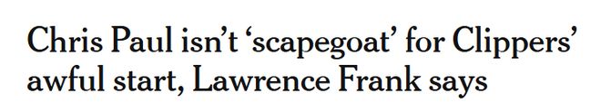 北京时间12月4日,在决定与未来名人堂控卫克里斯-保罗分道扬镳后,洛杉矶快船队篮球运营总裁弗兰克为球队本赛季的糟糕表现承担了“全部责任”,同时向媒体和球迷保证,球队并未将保罗当作替罪羊。