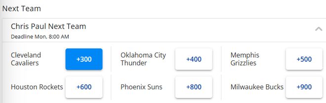 保罗下家最新赔率:骑士成头号热门雷霆第二 火